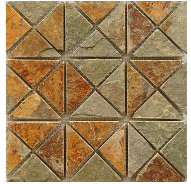 Length(mm):305 Width(mm):305 Colour:rusty Material:Natural Stone Suitable For:Floors,Walls A mosaic is a piece of art or image made from the assembling of small pieces of colored glass, stone, or other materials. It is often used in decorative art or as interior decoration. Most mosaics are made of small, flat, roughly square, pieces of stone or glass of different colors, known as tesserae. Some, especially floor mosaics, are made of small rounded pieces of stone, and called "pebble mosaics"