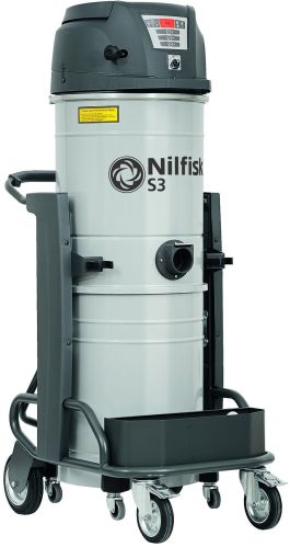 Available in a variety of configurations, the S3 single-phase industrial vacuum cleaner features solid construction and cutting-edge innovations like an electronic keypad with LED indicators to monitor performance of the main and HEPA filters. The S3 is available with 50 or 100 liter collection capacities and can be equipped with many different features including, liquid or level sensors for automatic shut-off and the Longopac collection system, a continuous bag that can be filled, cut, disposed, and immediately restored for a new use.