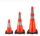 Brilliant fluorescent red-orange with UV inhibitor Specially designed cleated base allows firm grip to the road and won’t easily be blown over 100% PVC injection molded cone Superior flexibility in any kind of adverse weather condition Reflective bars provide wide angle reflectivity Part numbers: 18″ (7501-18), 28″ (7501-28)