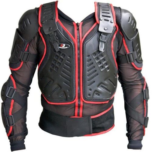 We are offering safety jacket. Safety jacket for bikers in injunction molded p u.with extra collar boan protection in red,black and blue trims no minimum order restrictions dhl deliveries door to door price 30 usd any embriodery logo facility held.