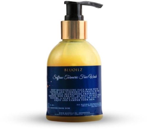 Unveil your natural radiance with Bluoilz Radiance Boost Saffron & Turmeric Face Wash from Gretas' Essentials. This luxurious, organic formula, infused with the ancient wisdom of Ayurveda, delivers a deep cleanse, nourishes the skin, and promotes a healthy, even-toned complexion.