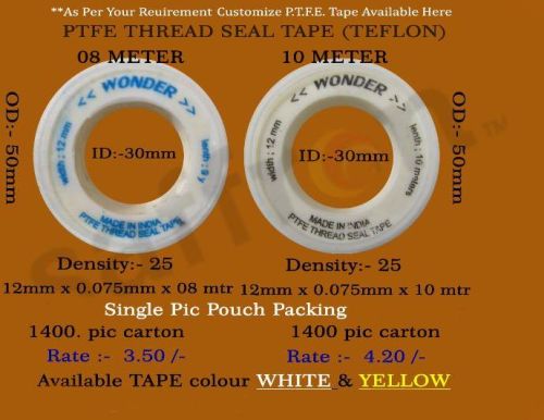 low density PTFE tefflon tape 12mm x 0.075 mm x 10 mtr 25 density tape weight 2.5 gm minimum oder 10000 nos.