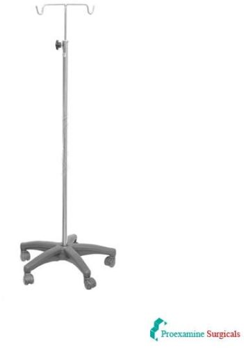 S.S. Tubular Pipe.Five leg base with Plastic Base 5cms castors.S. S. adjustable from 137 to 240 Cms I V rod with double hook