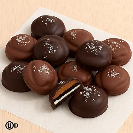 This gift is the definition of decadence. We’ve taken OREO® cookies, topped them with caramel and dark or milk chocolate, then sprinkled them with sea salt. A perfect indulgence that’s sure to delight even the most discerning dessert lovers. 6 Milk Chocolate Covered OREO® Cookies with Caramel and Sprinkled with Sea Salt 6 Dark Chocolate Covered OREO® Cookies with Caramel and Sprinkled with Sea Salt OREO is a registered trademark of Intercontinental Great Brands LLC Certified Kosher Dairy by Orthodox Union Item