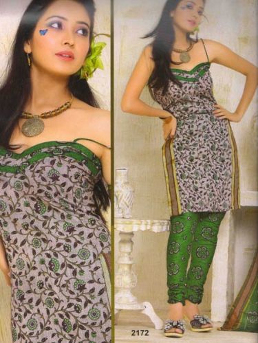 We are offering garhwal border salwar suit. this is unstitch salwar suit made of 100% south cotton fabric with cotton dupatta. This dress material contails three piece top, salwar and dupatta. this suit have golden and silver gadhwal border in top and dupatta, this thing gives an elegant look to you body.