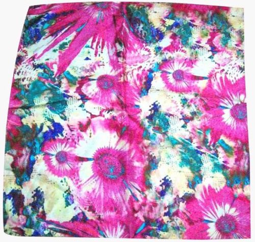 We offer fancy digital printed square scarves. size 100 x 100 cm printed scarves are available in all kinds of fabrics, sizes and colour combinations.