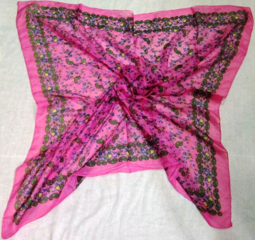 We are offering silk printed square scarves. Silk printed square scarves size : 100cm x 100cm colours : many colours are ready buyers design are welcome we also specialize in oem,wholesaler & promotional items.
