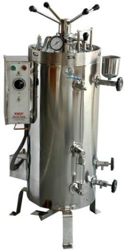 We are offering vertical autoclave. * semi & fully automatic * pressure 15 to 20 p.s.i. * hydraulically tested up to 40 psi. * operation electrical supply 230 volt * silicon gaskets. * litter capacity as per specifications. * standard accessories water level indicator, pressure gauge, safety valve.
