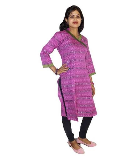 This purple color handloom sambalpuri kurti has a beautiful flower work. This kurti is made from cotton fabric, which ensures complete comfort and breathability to the wear.