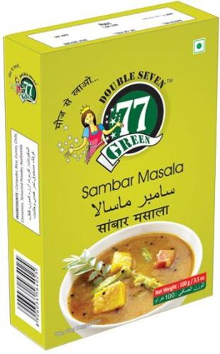 77Green Sambar Masala: - Sambhar is an all time favorite South Indian flavorful spices powder. 77Green Sambhar Masala is a ground spices mixture of various spices and ingredients. This spices powder gives your Sambhar Masala dish a spicy and sourish taste with tantalizing aroma. It can be served with Idli, dosa, rice, etc. Apart from mentioned packaging and bulk packaging (5kg, 10kg), we also deal in buyer’s specific packaging requirement.