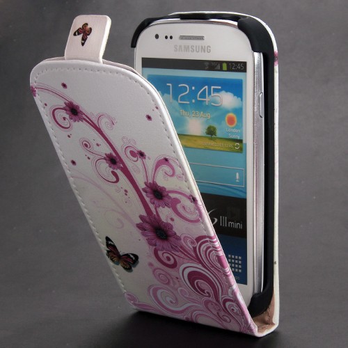 - 1x flipcase mit schmetterling design für samsung galaxy s3 mini