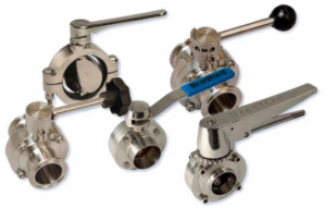 Sanitary valves come in a number of different types which include; globe valves, air relief, check valves, and butterfly valves. The butterfly valve is a quick opening valve that consists of a metal disc with a circular design. They are very popular since they are often used for throttling and make for excellent control valves.