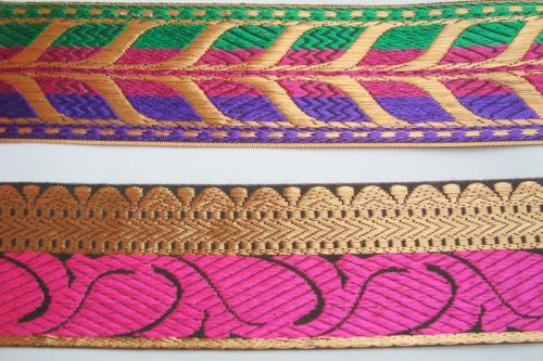 We manufacturing different laces using different materials like senil yarn,sequence,metalic jari,valvet,wool,polyster yarn,nylon diable yarn,viscos,broket lace,crochet lace etc.