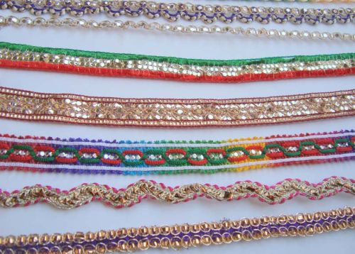 We manufacturing different laces using different materials like senil yarn,sequence,metalic jari,valvet,wool,polyster yarn,nylon diable yarn,viscos,broket lace,crochet lace etc. .