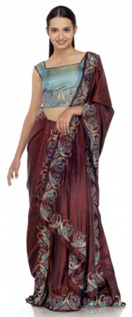 3 piece Lehnga Choli Dupatta: The Gray Blue peacock embroidery adorns the maroon lehnga just like the magnificent paintings adorn the walls of the ancient temples. Fabric: Art Silk with Cotton Lining.