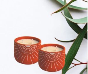 SATYAKI's dual-wick candle is ethically made and hand-poured into a beautifully hand-painted terracotta container. This vegan candle, made entirely of vegetable-based soy wax, is the ideal balance of sustainability and elegance.Dimension: Diameter- 2.5in,