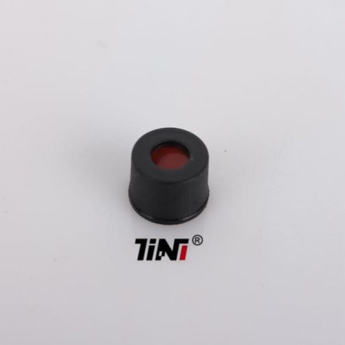SC8281 red PTFEwhite Silicone septa, 8mm black screw polypropylene cap, 5.5mm centre hole