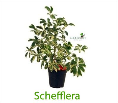 Schefflera is a popular houseplant, also known as dwarf umbrella tree. Its oval leaves that droop gracefully from a central stalk needs bright but indirect light. Type :Indoor & Semi-Shade Watering :Twice a week Site Selection :Room & Corridors Availability : In Stock