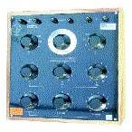 We are offering schering bridge p= r1=consists of ratio dials of 1, 10, 100 and 1000 ohms r2=consists of ratio dials of 1, 10, 100 and 1000 ohms c1 = gang capacitor of 500pf. Q = in this arm c1 is placed parallel with r2 to form 2nd arm cd r = c3= consists of three dial condenser box of 0.001x10, 0.01x10 & 0.1x10mfd. R = consists of three dial resistance box of 1x10, 10x10, 100x100 ohms. Unknown capacitor c1 whose value is to calculated is connected in series with r to form 4th arm s terminal for headphone, unknown capacitor & oscillator for provided.