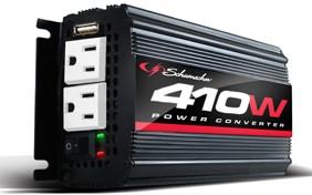 converts vehicle power to household power • 410 watts/820 peak watts • 5v usb port – powers most electronic accessories • easy to use – plugs into vehicle’s accessory outlet or connects directly to battery with clamps • thermal protection – shuts unit down if operating temperature is excessive • surge protection – protects against damaging current fluctuations • high-speed fan – built-in for constant, cool operation • on/off switch • low battery alarm