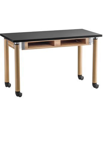 Round legs have a 23⁄8” diameter, and are offered in: -stylistic matching light oak woodgrain -striking textured black Legs adjust smoothly and easily in ¾-inch increments – from 29” to 41” height. Adapts for ADA requirements Easy assembly, with pre-drilled pilot holes Patented mechanism allows table to rise effortlessly and automatically lock at your height setting requirement. Available with and without book compartments Weight Capacity: 500 lb.