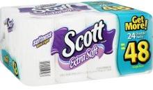 We are offering scott extra soft bathroom tissue.308 sheets per roll. 4.2 x 4 inches. 861.6 square feet. 24 double rolls (compared to 150 sheet regular rolls) = 48 single rolls. Softness done right. Scott extra soft tissue combines the right amount of softness with long lasting rolls to provide your family with a sensible combination of comfort and value. That's softness done right. Made in the us from domestic and imported material.