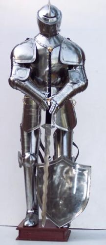 We are offering scottish armour suit - (j15) etc. 6 feet in height18 gauge carbon steelavailable with a flamberge sword, shield and stand material used: carbon steel, wood and leather.