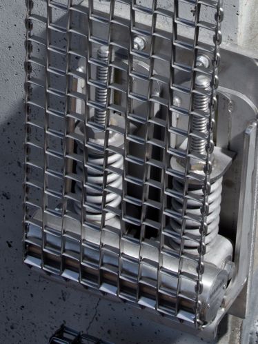 Cambridge’s Scroll™ self-tensioning attachment hardware keeps the focus on the metal fabric by hiding the attachment behind it. Scroll™ conceals the bracket that attaches to the structural support. Scroll™ uniquely grips the metal fabric, holding it in tension. Scroll™ is appropriate for lengths of metal fabric up to