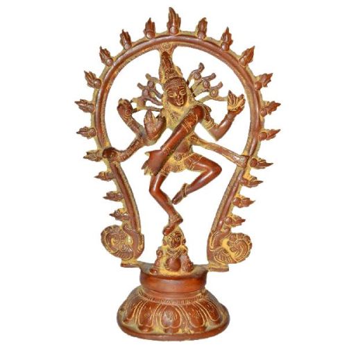 Contact SupplierThe King of Dance - Nataraja. Nataraja or Nataraj depicts the third god of Hindus - The Lord Shiva. In this avatar Shiva - who is believed to be the destroyer of all evils is shown in the form of a divine dancer performing his dance. The dance signifies putting an end to an exhausted world and signaling the creation of a new world by the Lord Brahma, first god responsible for the creation of the universe. In this brass sculpture Lord Shiva is seen dancing in a ring of flames, while lifting his left leg and is seen balancing on demon that is believed to signify his ignorance. That is - when Shiva comes as Nataraj he is on his own, without any fear of any evils, or any obstacles. Nataraj is always depicted with his four hands. A cobra (snake) uncoils from his lower right forearm. The upper right hand holds a "Damru", a small drum shaped instrument. The second right hand is in 'Abhayamudra' meaning protection against evil and ignorance. The upper left hand contains fire, symbolizing destruction. The second left hand points towards the raised foot which signifies liberation.