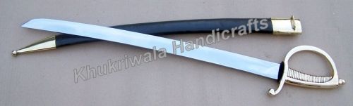 Delivering the best in class products, we ensure that the range is in compliance with the International Norms.For the utmost convenience of our customers, we ensure that the transaction is done only under the stern supervision of experts and professionals. This makes our payment procedures more secured and transparent. #SD19 Briquet Saber with Scabbard (22 inches blade) Material:- high carbon steel blade Brass Handle Leather scabbard with brass parts