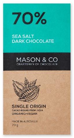 One of our most popular bars!We combined our 70% dark chocolate with sea salt from the salt-pans of Marakkanam to create the ultimate indulgence. As it melts in your mouth, the salty-sweet combination highlights chocolate and caramel flavours. This bar is perfect for the chocolate connoisseur. Organic, vegan, gluten and soy free.