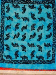 This is a perfect piece as Picnic Blanket or Beach Decor, the colors are beautiful and warm and gives a very good effect of turtles swimming in the ocean.