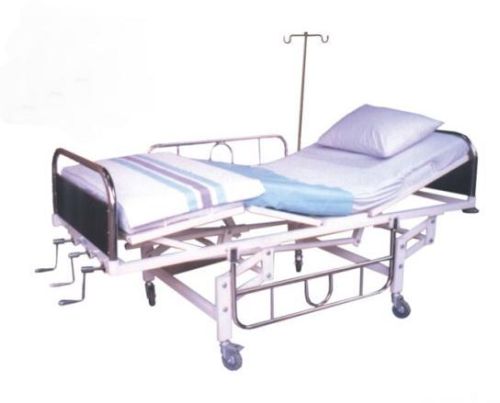 We are offering 2 section semi fowler adjustble bed ( mm012)  approx size : 2010lx914wx610h, perforated crca sheet top-four 100mm swivel castors with two brakes-  four revolving corner buffors-ss tubular head & foot bows with laminated panels – four i.v. Rod locations.  pre treated & powder coated.