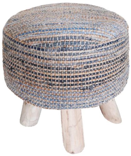 Blue Recycle Denim+Jute SEI-S-1496 Hand Woven Stool