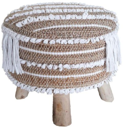 SEI-S-1497 Jute Hand Woven Stool, Color : Natural/white