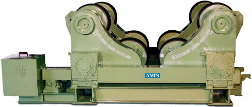 Each section supports the vessel / Job on four points ensuring better traction, and on machines of 3 T to 500 T capacity and upwards 50 metric tonnes all four wheels of the drive section are positively driven. This four point suspension is an added advantage when on handling thin walled vessels.