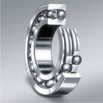 This type of ball bearing is recommended when alignment of the shaft and housing is difficult and the shaft may flex. The outer ring has a spherical raceway and its center of curvature coincides with that of the bearing; therefore, the axis of the inner ring, balls and cage can deflect to some extent around the bearing center. Pressed steel cages are usually used. Since the contact angle is small, the axial load capacity is low. The permissible dynamic misalignment is approximately 0.07 to 0.12 radian (4 to 7 degrees) under normal loads.