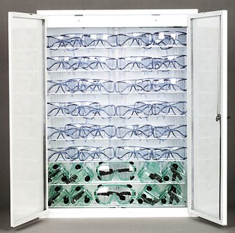 Contact SupplierThe Sellstrom Safety Eyeglass and Goggle UV Germicidal Cabinet is made in the United States and uses ultraviolet light to disinfect your safety eyewear for your workers with an average kill rate of 99.2% in 5 minutes. The germicidal cabinet can be mounted on a wall or placed on a shelf includes a five minute timer to shut off the UV Germicidal Cabinet after use. It has 8 shelves to fit up to 48 pairs of safety glasses.