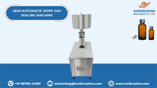 The Semi-Automatic ROPP / Screw Cap Sealing Machine consists of the main structure, adjustable height, cap sealing head, bottle holding unit & mains ON/OFF.