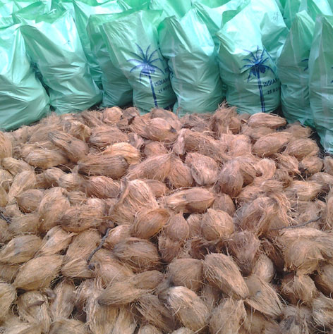 Specification semi-husked coconut name of the product natural coconut color light brown maturity matured grade semi-husked weight 500gms. To 600gms. Nut size 12 to 13 inches packing 25 nuts per bag lodability of a 20ft container 900 bags lodability of a 40ft container 1800 bags