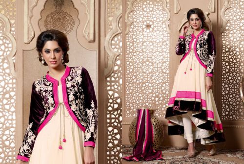 We are offering Semi Stitched Anarkali Salwar Suit. The suit is available with Bemberg georgette top, santoon bottom and chiffon dupatta. The suit is known for its beautiful designs as well.