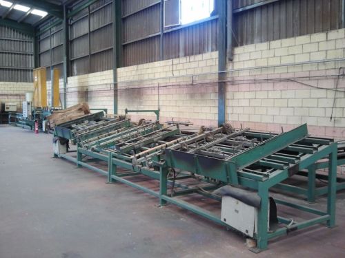 We are offering semiautomatic nailing machine for pallets. The operator feeds the timber and nails the bottom of the pallet. Then it turns it over to the second half of the bench, and nails the bottom. by pushing another button the finished pallet falls into a conveyor and goes to stacker, or first, corners cut, branders, etc. One or two operators will work on it. the line may have a second nailing bench so that to double production. (picture)