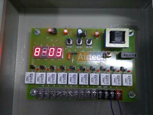 Our sequential Timer has been designed to operate the pulse valve used on dust collector equipment. light emitting diodes (LEDs) provide a visual indication of which pulse valve is being energized as well as “ power on” indication. The number of sequenced steps is adjustable from 2 to 18. Controls are provided to adjust the length of time between valves being energized and length of time that the valve is energized. Silicon semiconductor components control all timing and logic function.