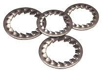 Serrated Washers available in mm and inches, which have internal teeth, are available in Stainless Steel, Plated Steel, or Phosphor Bronze as standard. These "shake-proof" serrated washers fitted internally to the equipment, before the application of a locknut act as an anti-vibration device to prevent the cable gland and locknut arrangement from loosening in service. These are of particular importance in situations where vibrating heavy machinery, such as mud shakers, pumps and drilling equipment is operating aboard mobile or fixed onshore and offshore drilling units.