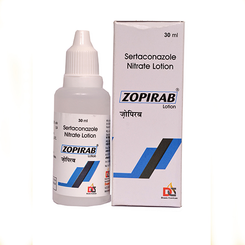 product name : zopirab lotionrncomposition : sertaconazole nitrate 2% w/wrnpack size : 30mlrnpackaging type : dropper bottlerntherapeutic category : anti-fungal.