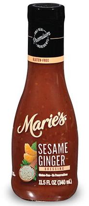 Soy sauce, ginger, brown sugar, red chile pepper, toasted sesame oil. These are a few of our favorite things, and they collaborate beautifully in our Sesame Ginger dressing. Marie’s Sesame Ginger dressing always adds pow for your palate, whether you toss it in our Asian Pear Salad recipe, use it to marinate salmon or serve it as a dip for spring rolls.
