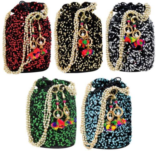 Mulit Colour Set Of 5 Potli Bag, For Jewellery Use, Technics : Attractive Pattern