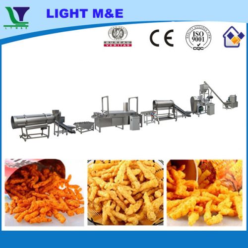 Contact SupplierCheetos are special extruded snacks, very crunchy and great in taste. They are made by a special extrusion process. The corn grits are moisturized in the flour mixer with water and fed to the rotary head extruder. In the extruder, due to the two rotary plates, the corn grits are squeezed and twisted to curls shapes. The cutting knives can cut into required lengths. The KurkureCheetos are fried in cooking oil or toasted in oven and then cooled before flavoring. Seasoning is sprayed on the surface to achieve different favorable tastes. Due to the delicious flavors and nutrition, it is quite popular with consumers.