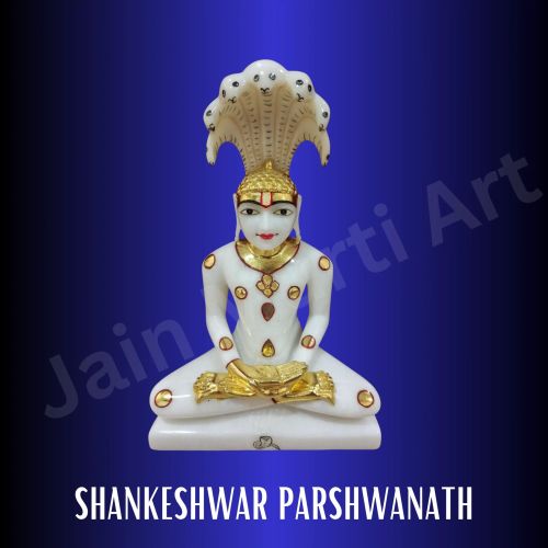 White Makrana Marble Shankeshwar Parshwanath God Statue 9 Inches