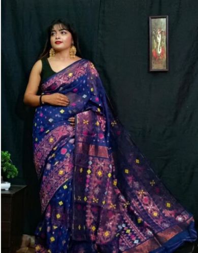 Unstitched Shantipur Jamdani Saree, Occasion : Party Wear, Wedding Wear